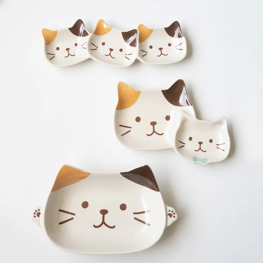Cette assiette en céramique en forme de tête de chat, inspirée de l’univers kawaii japonais.