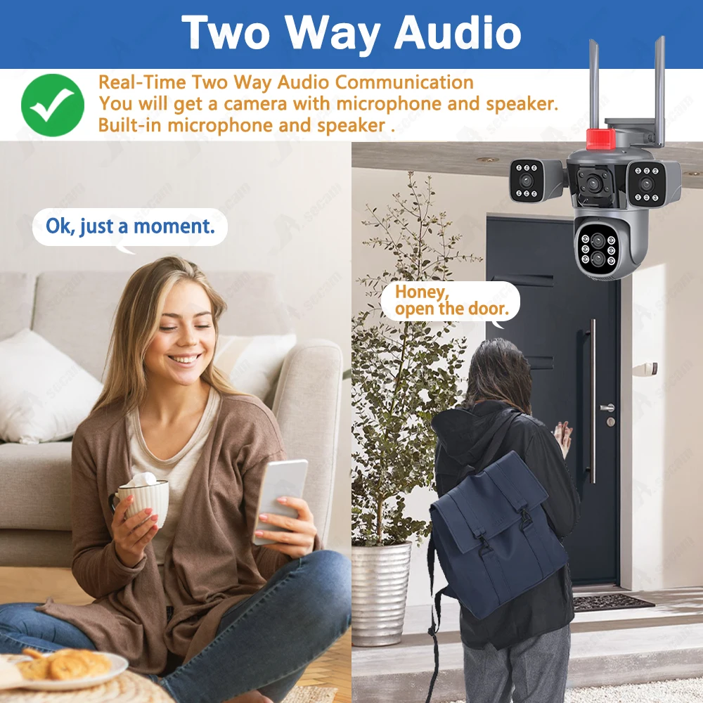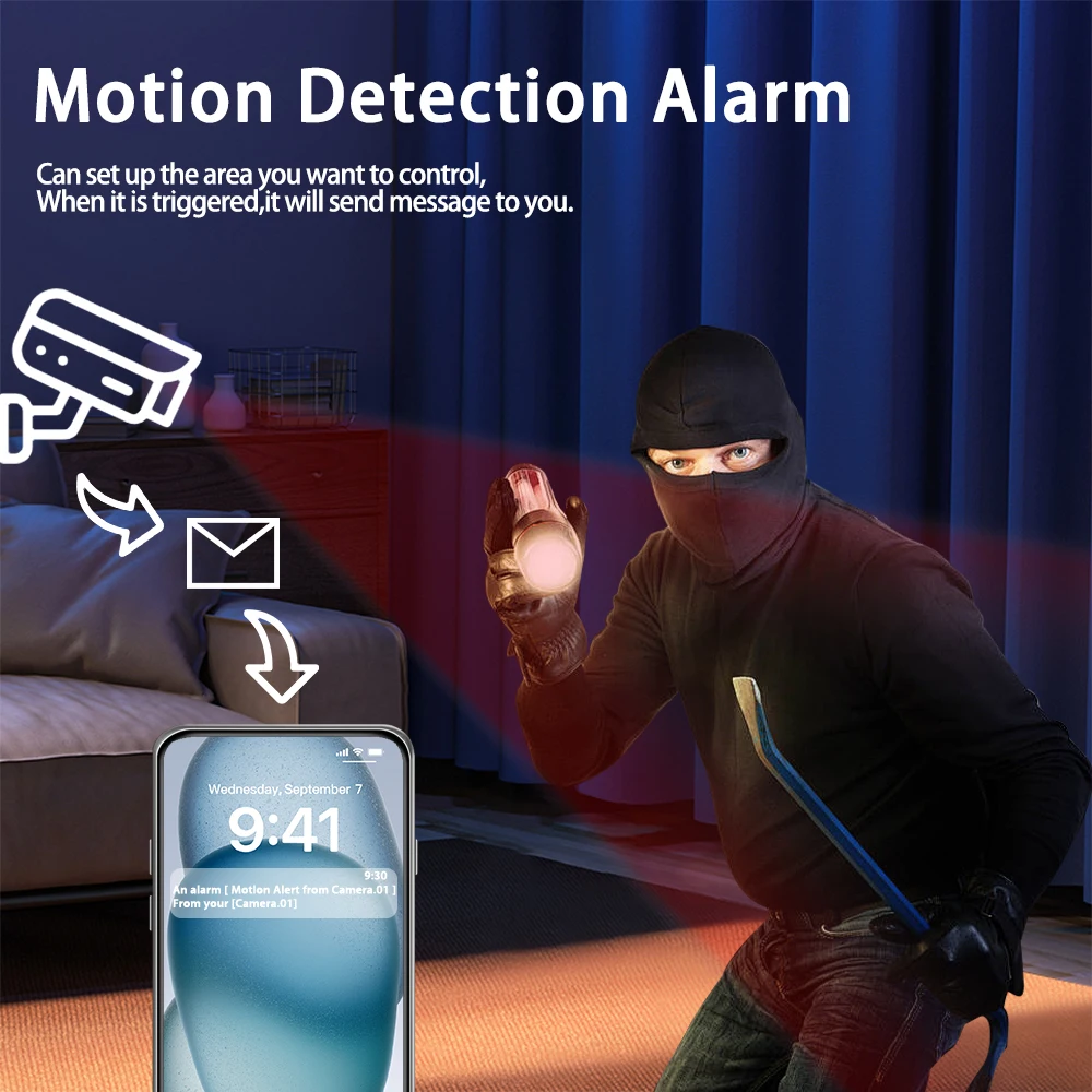 Tout mouvement suspect jeté dans l’Å“il de la caméra sera détecté et enregistré, laissant les voleurs et les voleurs nulle part où se cacher. En même temps, vous recevrez des poussées d’alarme APP instantanées sur vos appareils intelligents où que vous soyez.