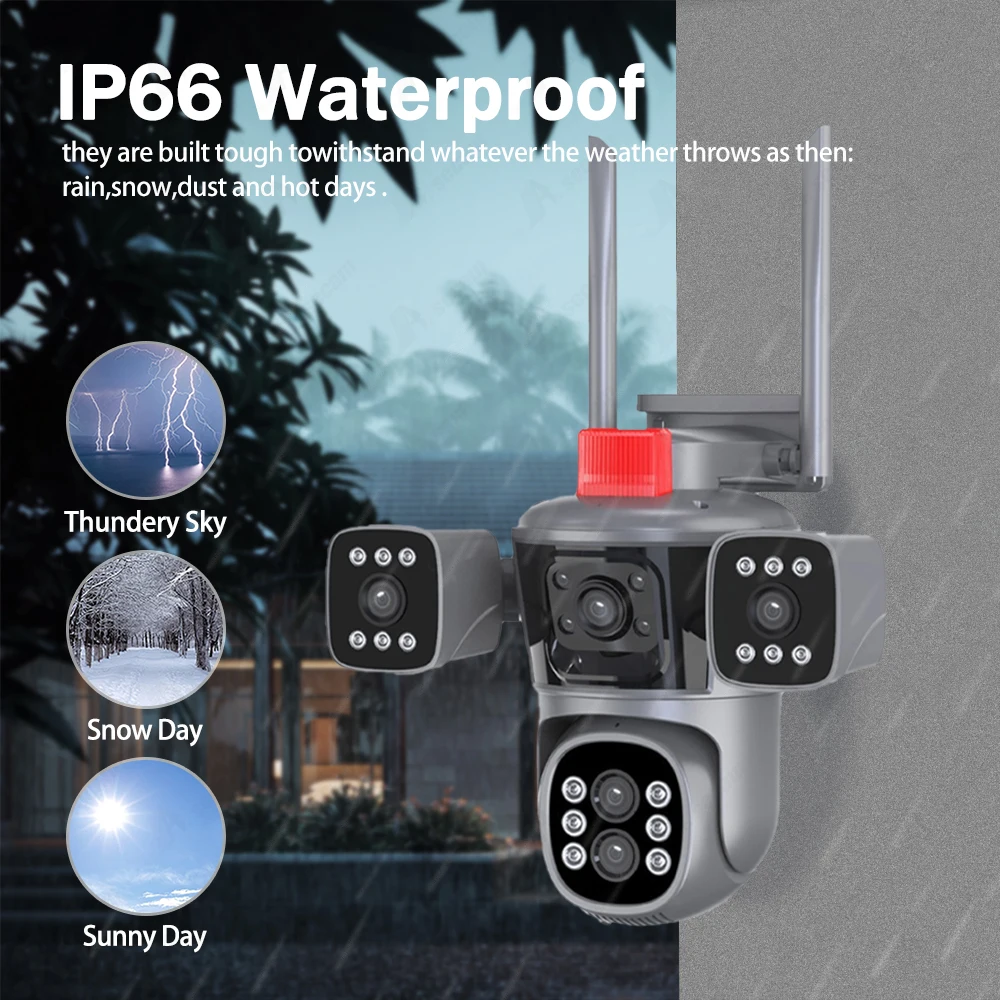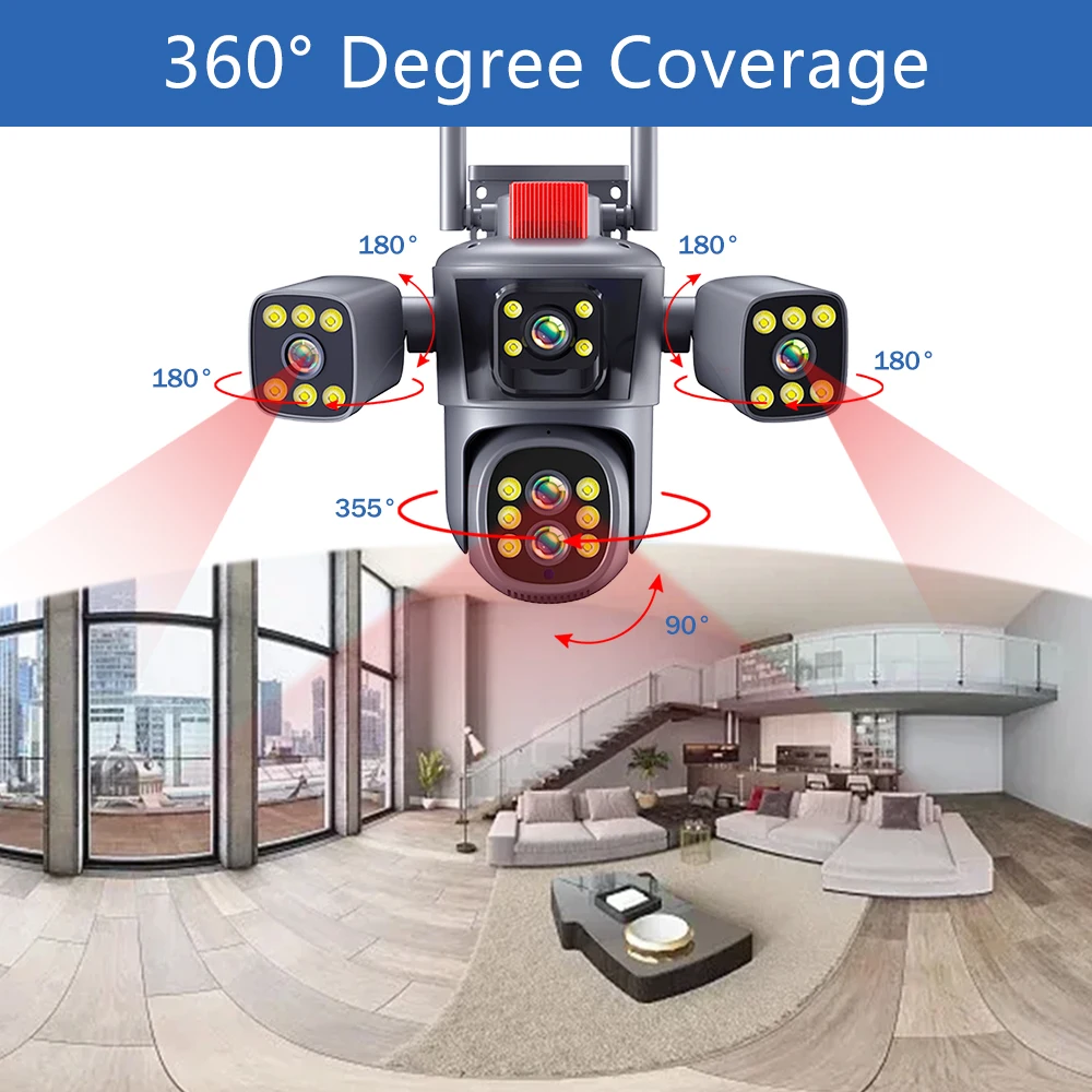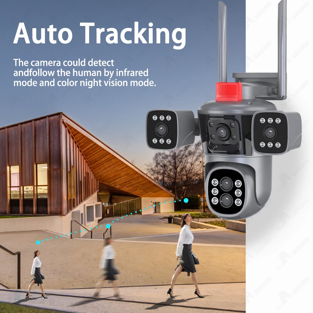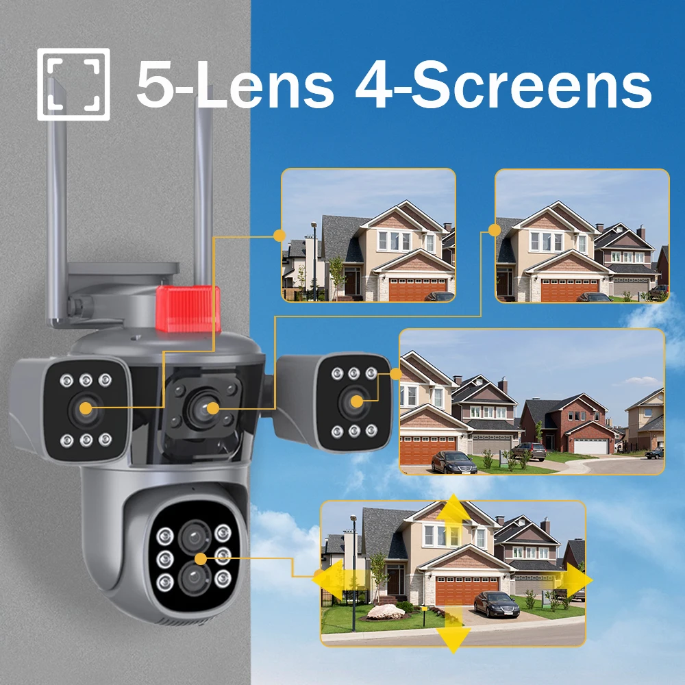 Caméra de protection de sécurité 20MP 10K WiFi Extérieur 10X Zoom Cinq objectifs Quatre écrans CCTV Vidéosurveillance Suivi automatique Caméra PTZ