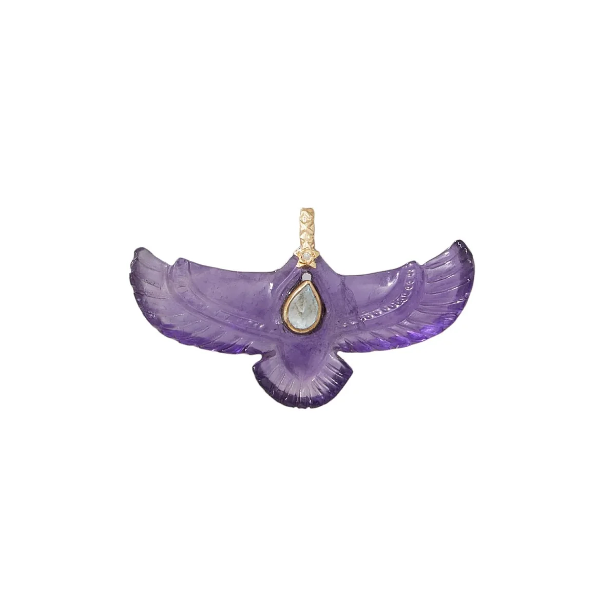 Pendentif monté sur une bélière en argent 925 plaqué or 24 cts, sertie d’un petit diamant.