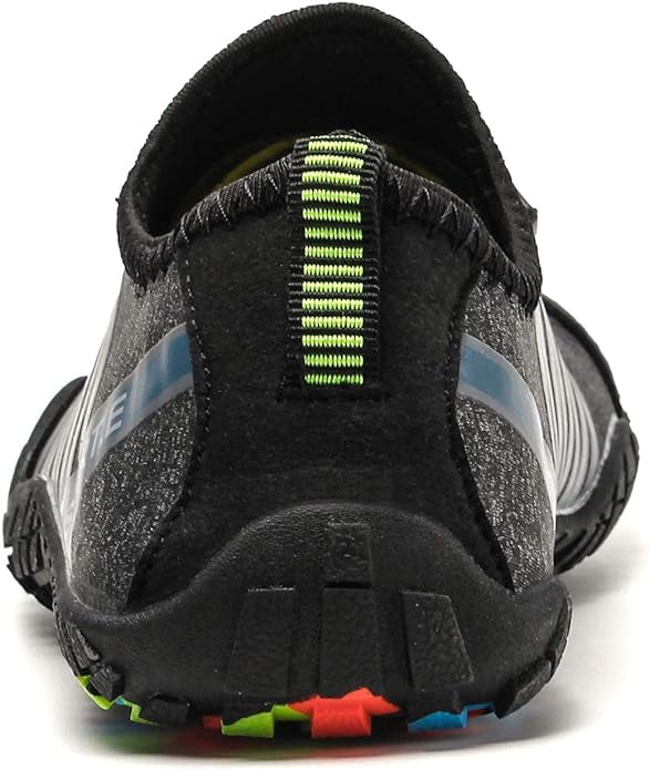 La semelle en caoutchouc de la chaussure pour chaussures aux pieds nus a une conception antidérapante. Chaussures de natation Shinmax offrant une bonne traction et un bon amorti, qui sont également importantes pour le facteur antidérapant sur les bateaux et les rochers humides, les chaussures Aqua peuvent protéger vos pieds des éclats de verre, des rochers pointus, des surfaces chaudes, des hameçons, des récifs coralliens et même des parasites .