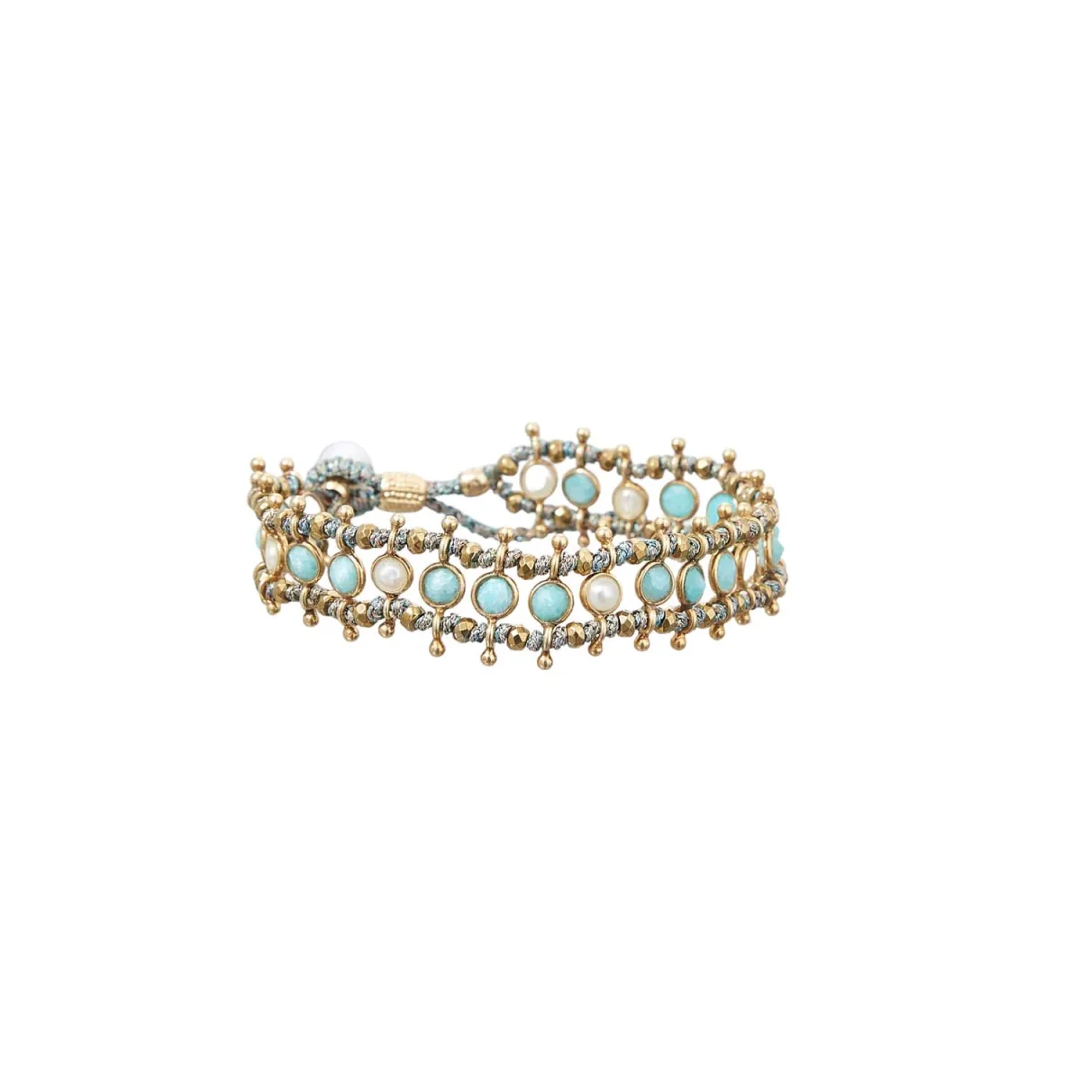 Le bracelet est noué entre les perles, cela nécessite plusieurs heures de travail dans notre atelier.