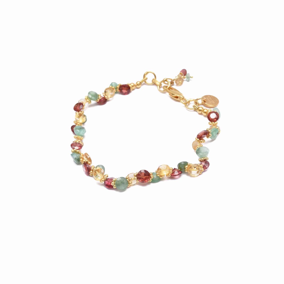 Bracelet en pierres fines naturelles Emeraude, Grenat, Citrine et argent 925 plaqué or.