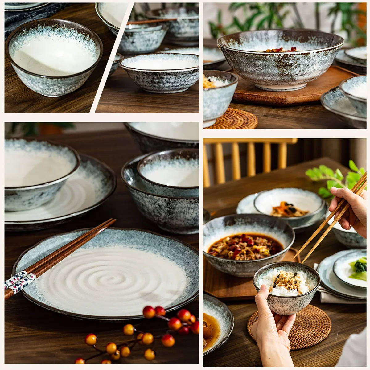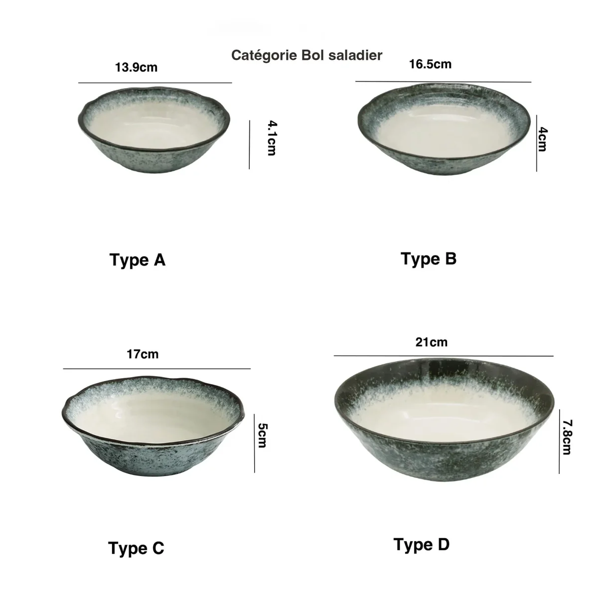Découvrez l’ambiance authentique du Japon avec cette collection de vaisselle en céramique à motifs minimaliste japonais, une addition incontournable à vos repas. Composée de bols à riz, d’assiettes variées, de bols pour les nouilles ramen et de coupes. Chaque motif est réalisé à la main selon la technique traditionnelle de peinture à la main sous le glaçage, puis cuits à une température élevée de 1320°C, garantissant une qualité exceptionnelle et une grande durabilité.