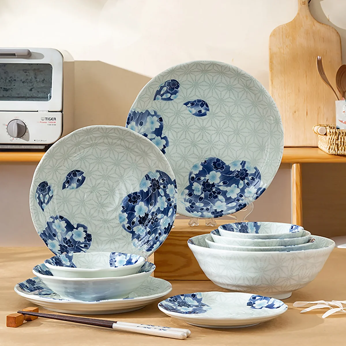 Vaisselles à motifs de cerisiers bleus