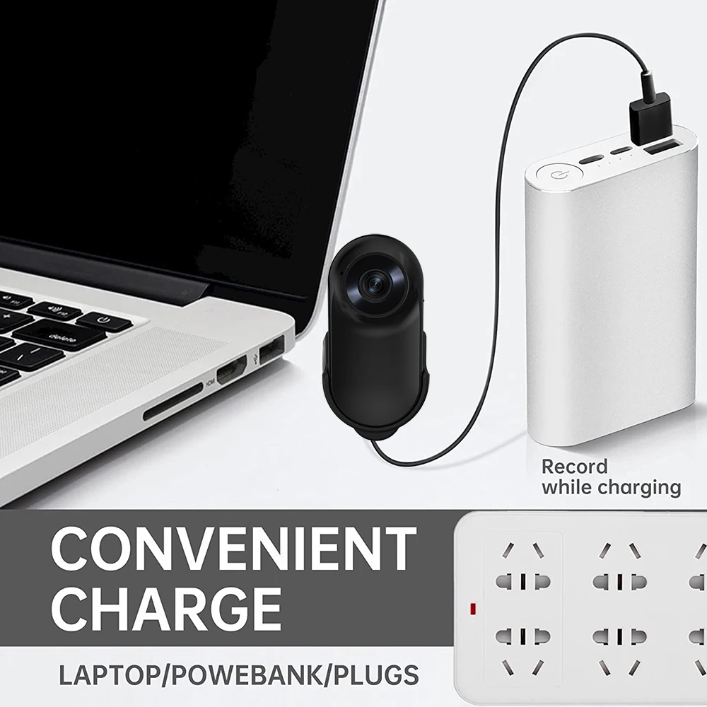 Batterie rechargeable intégrée, une charge peut enregistrer pendant environ 2 heures, et elle prend également en charge la charge pendant l’enregistrement, peut être utilisée avec votre banque d’alimentation rechargeable.