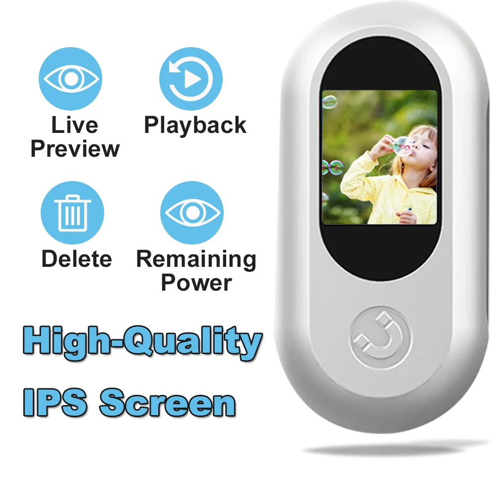 Comparez avec d’autres mini caméras corporelles, cet appareil photo portable dispose d’un écran HD pour gérer le fichier et définir les options de l’appareil photo dans le menu.