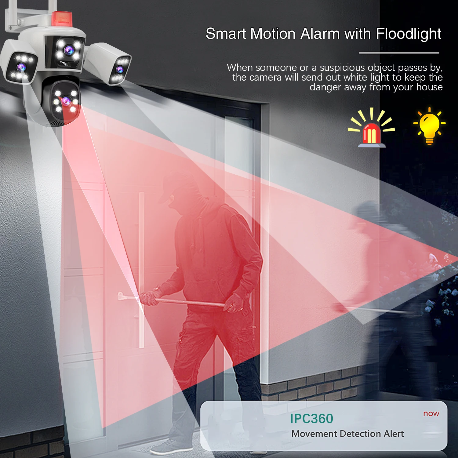 Après avoir verrouillé la cible, la caméra ajustera automatiquement la rotation de l’inclinaison panoramique. Suivez les objets en mouvement, les voitures, les animaux de compagnie, les humains et les notifications d’alerte push sur votre smartphone.