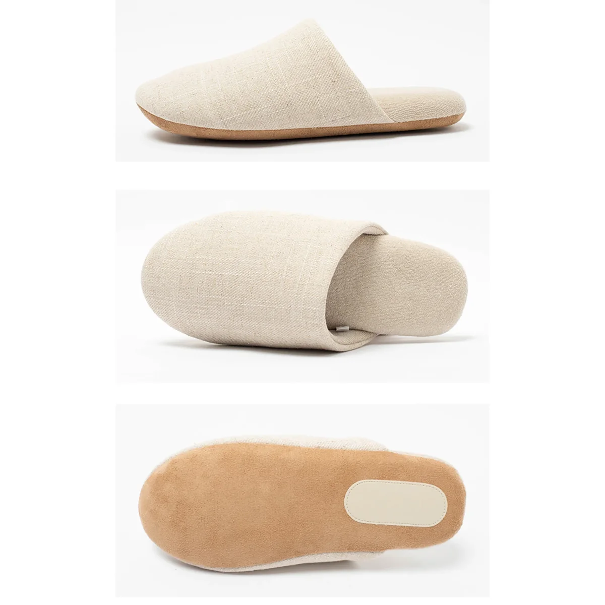 Ces chaussons à bout fermé au style minimaliste sont parfaites pour toute l’année. Elles sont fabriquées avec une tige et une semelle intérieure en lin et coton, offrant un design simple et élégant. La semelle en daim doux offre une excellente performance silencieuse et antidérapante, tout en restant douce et durable. Ces pantoufles sont également lavables en machine, ce qui les rend faciles à entretenir et pratiques pour une utilisation quotidienne.