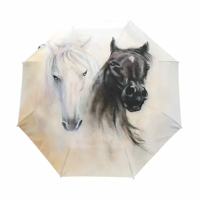 Emportez avec vous un morceau de votre passion où que vous alliez avec le parapluie original thème cheval. Mêlant fonctionnalité et art, cet élégant parapluie est un parfait compagnon sous la pluie, brillant par sa majesté. Conçu pour les amateurs d’équitation et les amoureux des chevaux, ce modèle unique combine esthétique élégante et robustesse.