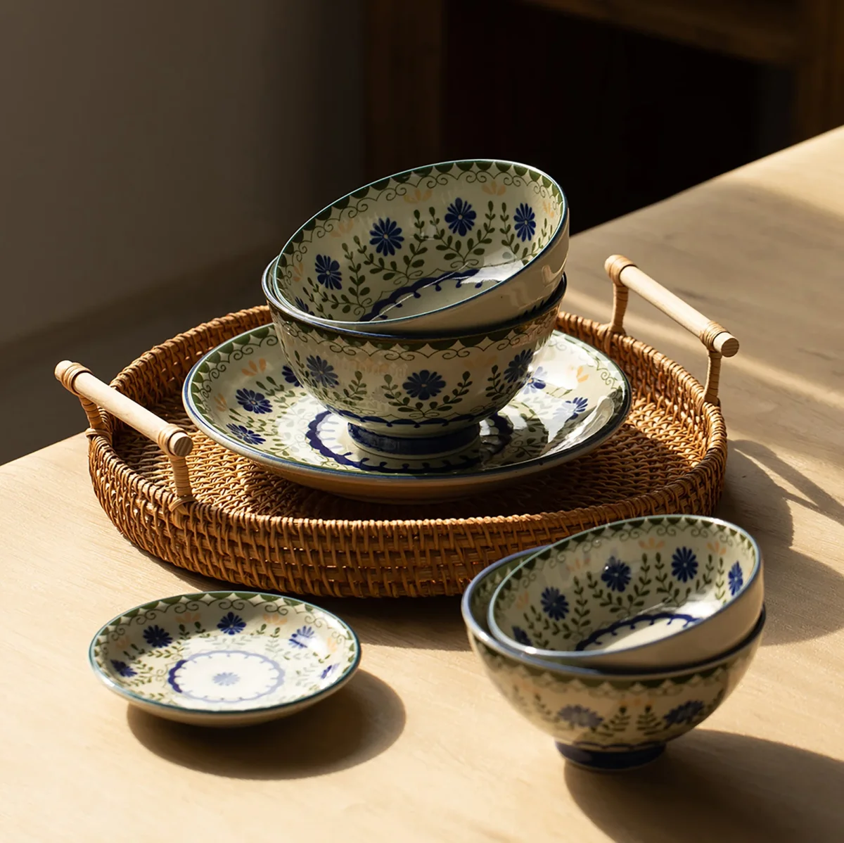 Le service de vaisselle en céramique « Jardin Vert » de Mino-yaki combine à la perfection l’émail vert vintage classique avec des gravures bleues profondes, reflétant une esthétique fraîche et sereine. La texture unique des craquelures ajoute une touche d’authenticité et de nostalgie. Fabriqué avec la technique de cuisson à haute température sous glaçure, il garantit la durabilité et la beauté des motifs. Cette série propose diverses formes pour répondre à vos besoins quotidiens, apportant raffinement et romantisme japonais à votre table.