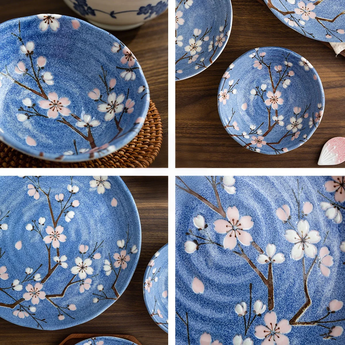 Cette vaisselle est soigneusement fabriquée dans la région de Mino, avec un design romantique de cerisiers bleus. L’ensemble comprend une variété de bols et d’assiettes de différentes tailles pour répondre à tous vos besoins de repas. Chaque pièce dégage une atmosphère romantique japonaise, ajoutant une touche d’élégance et de chaleur à votre table.
