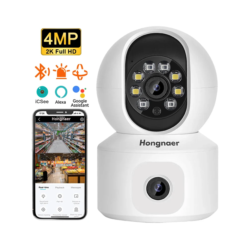 Caméra de Surveillance 2K 4MP Smart Home Réseau intérieur 360 Sécurité sans fil PTZ IP WiFi Double objectif CCTV